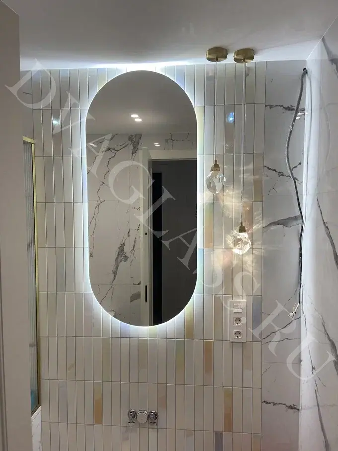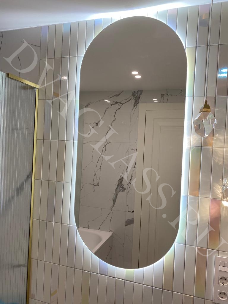 Зеркало серебро , рама крашенный МДФ с скрытыми петлями .Посветка 4000К (нейтральная), подсветка фасадная (задняя), эффект парения, способ включения - от выключателя заказчика